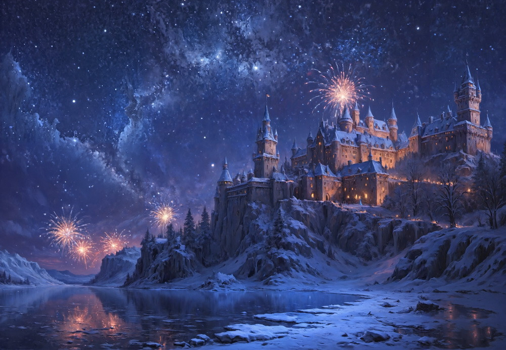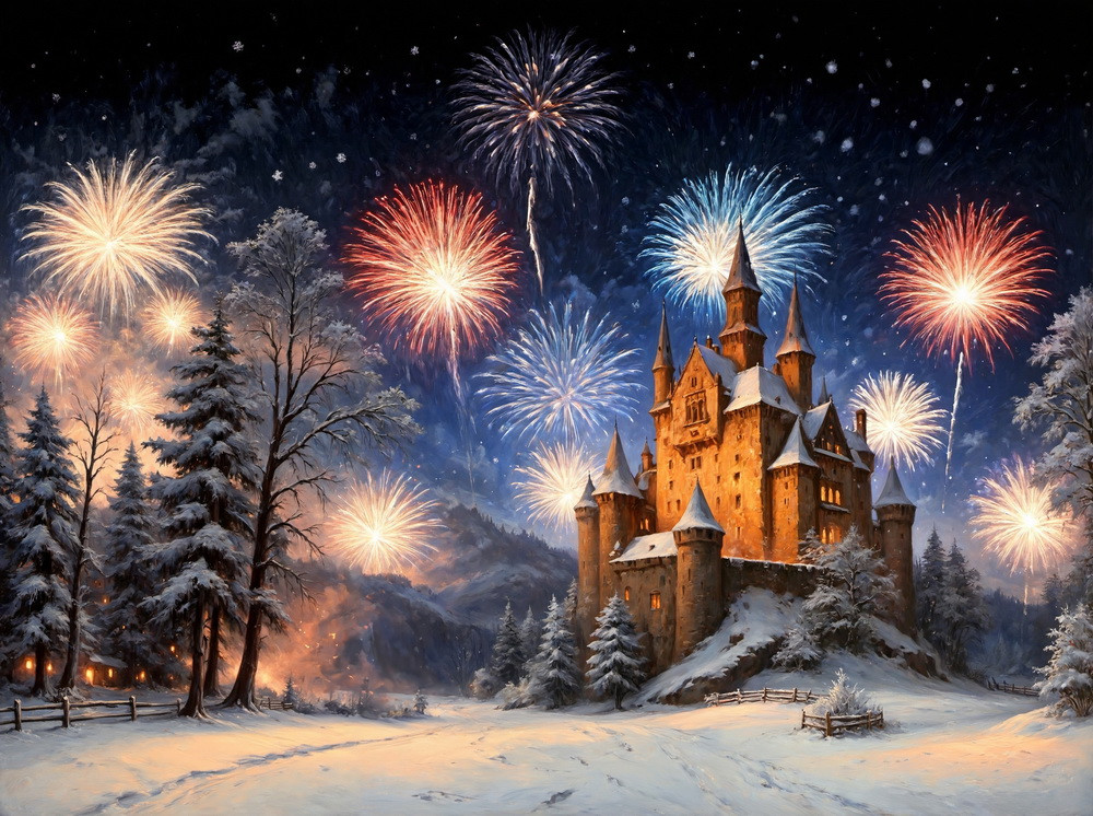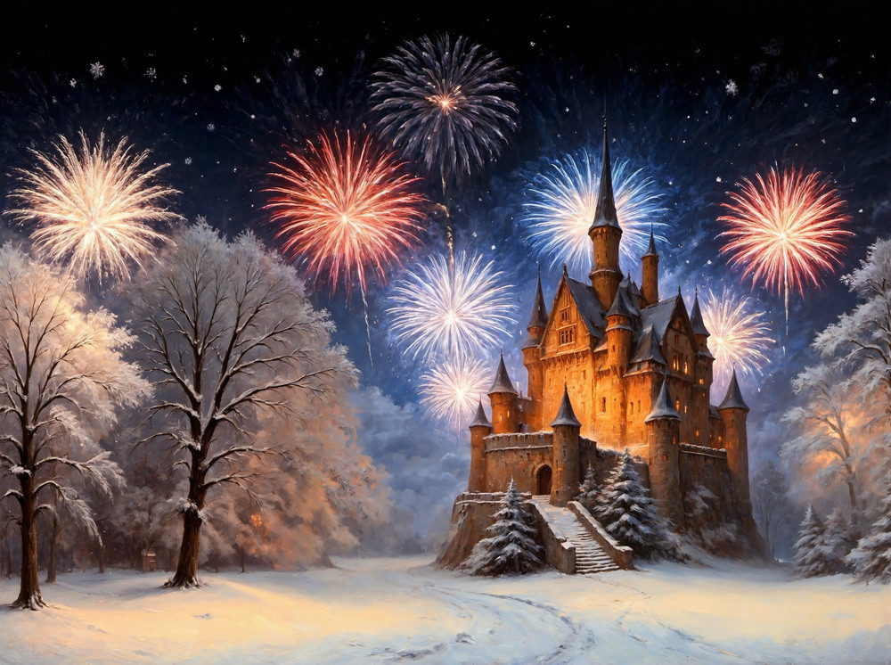 Backdrop "Old castle fireworks"
