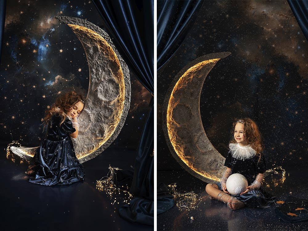 Преобладающие цвета – синий и коричневый. Синий цвет создает ощущение глубины и простора космоса, в то время как коричневый присутствует в туманностях, придавая теплоту и объемность. Звезды излучают золотистое свечение.